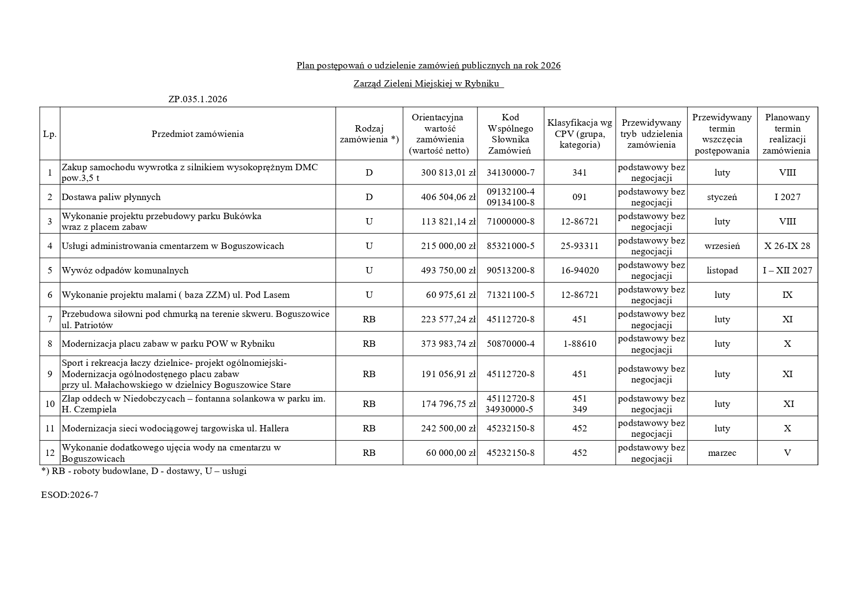 Plan postępowań o udzielenie zamówień publicznych na rok 2026